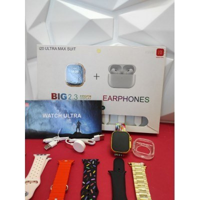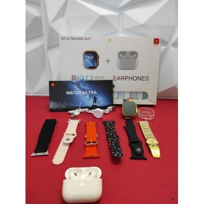 اقلام همراه : 1 عدد کابل شارژر, 7 عدد بند در رنگ بندی متنوع, ایرپاد پرو, شارژر وایرلس, گلس, یک عدد ساعت هوشمند