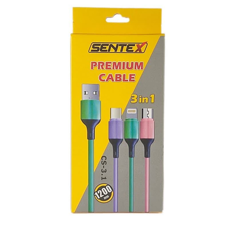 کابل مغناطیسی سنتکس سه در یک مدل CS-3.1 کاربران گوشیهای هوشمند برای شارژ گوشی خود به دستگاههای دارای پورت USB باید از کابل استفاده کنند. این کابل 2.4 آمپر و طول این کابل یک متر است و دارای سرهای مختلف برای شارژ و انتقال اطلاعات ( Micro, Type C, iOS ) می باشد جنس محافظ کابل از نایلون بهم تابیده و دارای مقاومت قابل توجه و از متریال سازگار با طبیعت است. به هیچ وجه رنگ آن از بین نمی رود و همچنین آسیبی به پوست کودکان نمی رساند . جنس داخلی سیم کابل از مس و آلومینیوم بوده