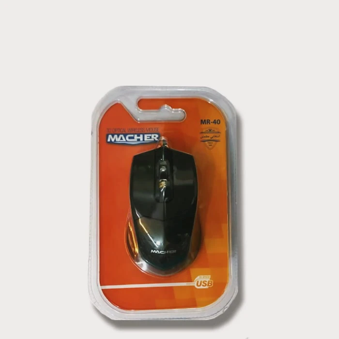ماوس «MR-40» محصولی از شرکت «MACHER» است که از طریق USB به کامپیوتر متصل میشود. اتصال از طریق USB باعث شده که این ماوس را به راحتی بتوان به هرکامپیوتری متصل کرد. ماوس MR 40 شرکت مچر از سه کلید برای انجام فعالیتهای کامپیوتری تشکیل شده است. کلیدهای این ماوس در برابر ضربات بسیار مقاوم هستند. طراحی ماوس MR_40به گونهای است که هم کاربران راست دست و هم کاربران چپ دست میتوانند از آن بهره ببرند. جنس بدنهی این ماوس از پلاستیک با کیفیت است. ماوس mr-40 شرکت مچر دارای DPI برابر با 1200 DPI است که به یاری آن میتوان با سرعت زیاد اشارهگر ماوس را در صفحه جابهجا کرد. طول کابل ماوس برابر با 1.5 متر است . شرکت macher آن را به یک روکش پلاستیکی تجهیز کرده تا در برابر انواع آسیبها مقاوم باشد.