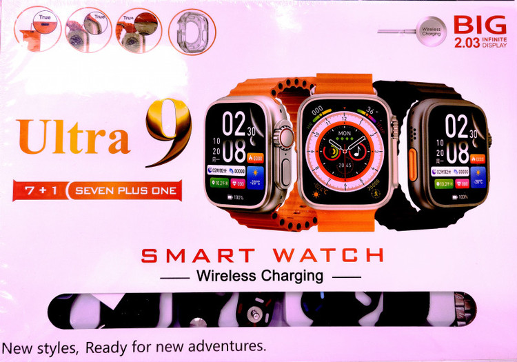 مدل Ultra9 7+1+1 ✅ تمام صفحه نمايش 49mm ✅ سري 8 ✅پلمپ شركتي ✅ وايرلس شارژر ✅داراي 7 نوع دستبند